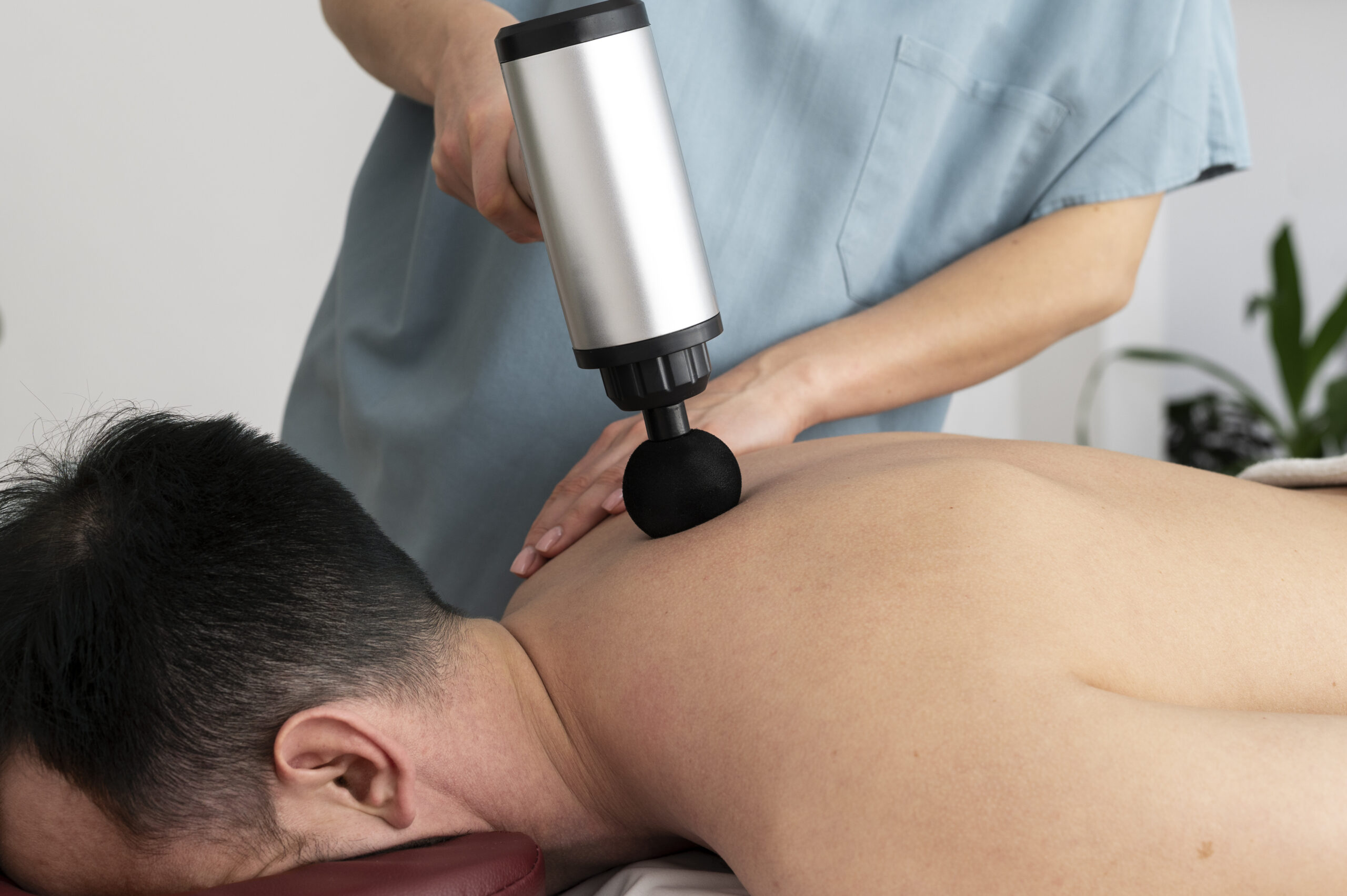 Также разновидностью вибрационного массажа является перкуссионный массаж, который выполняется с помощью перкуссионного массажера (пистолета). Этот вид массажа более глубоко и точечно воздействует на мышцы и триггерные точки и может использоваться пациентом самостоятельно. Его очень любят спортсмены, так как такой перкуссионный массаж быстро снимает напряжение и боль в мышцах.